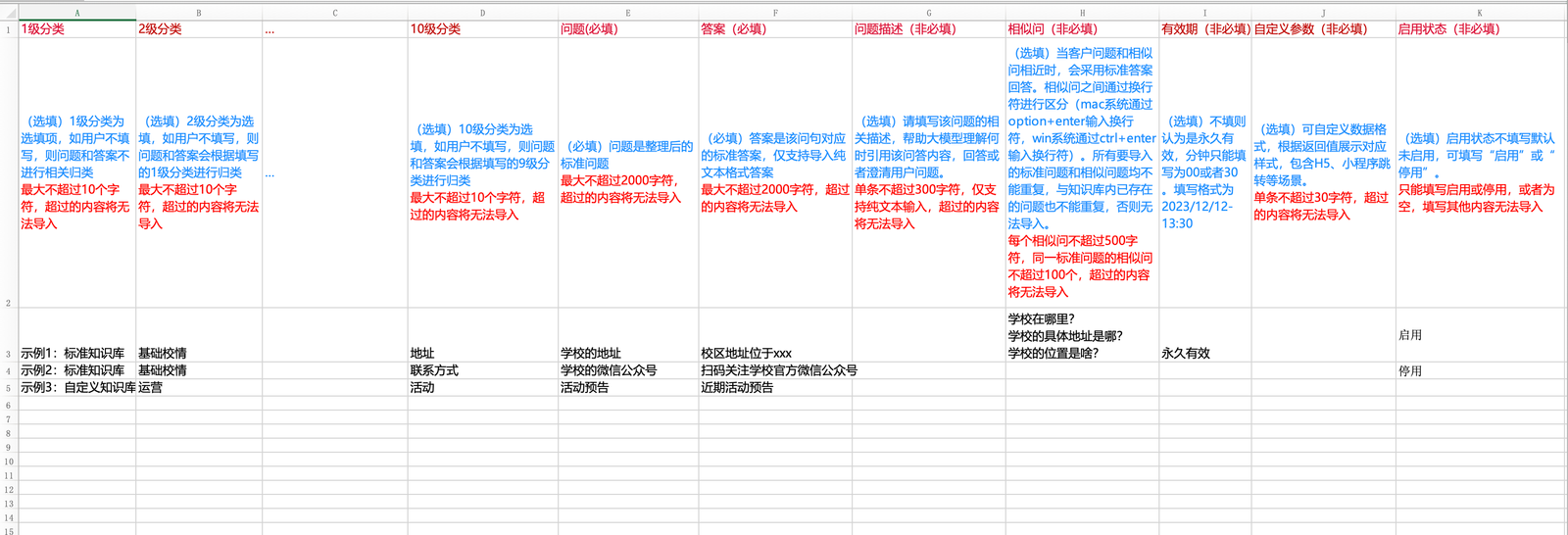 说明:模版中只有问题和答案是必填,其他内容按需选填