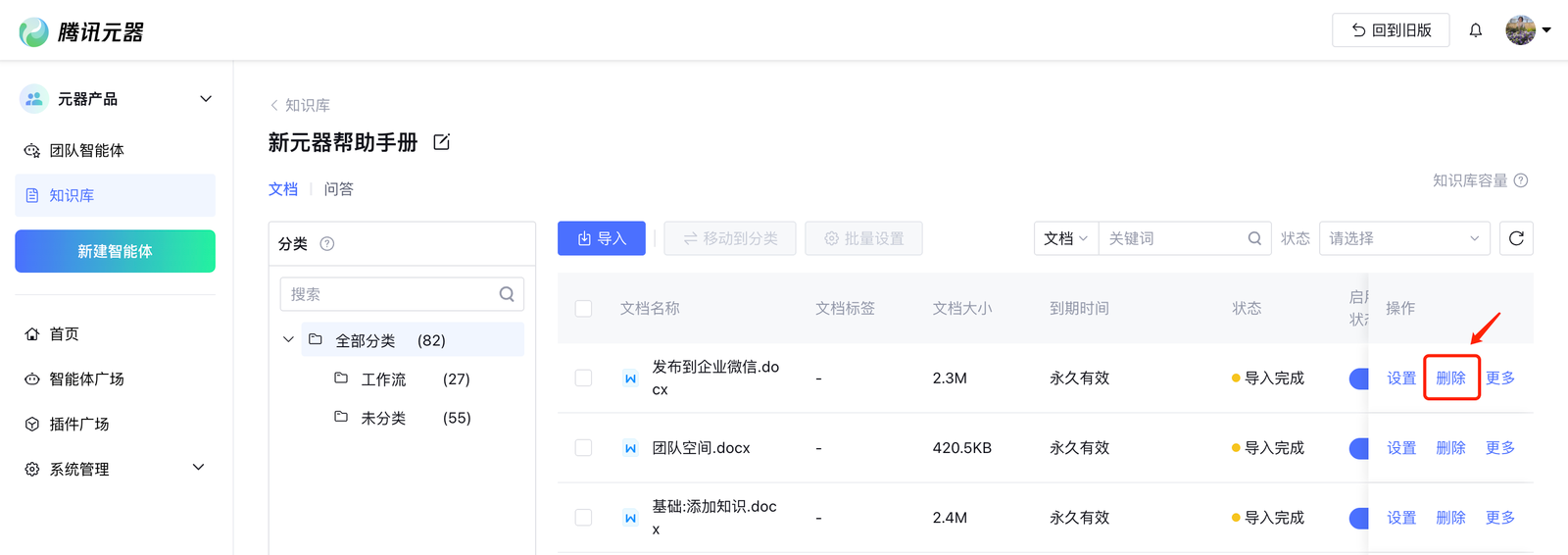 删除知识库中的文档