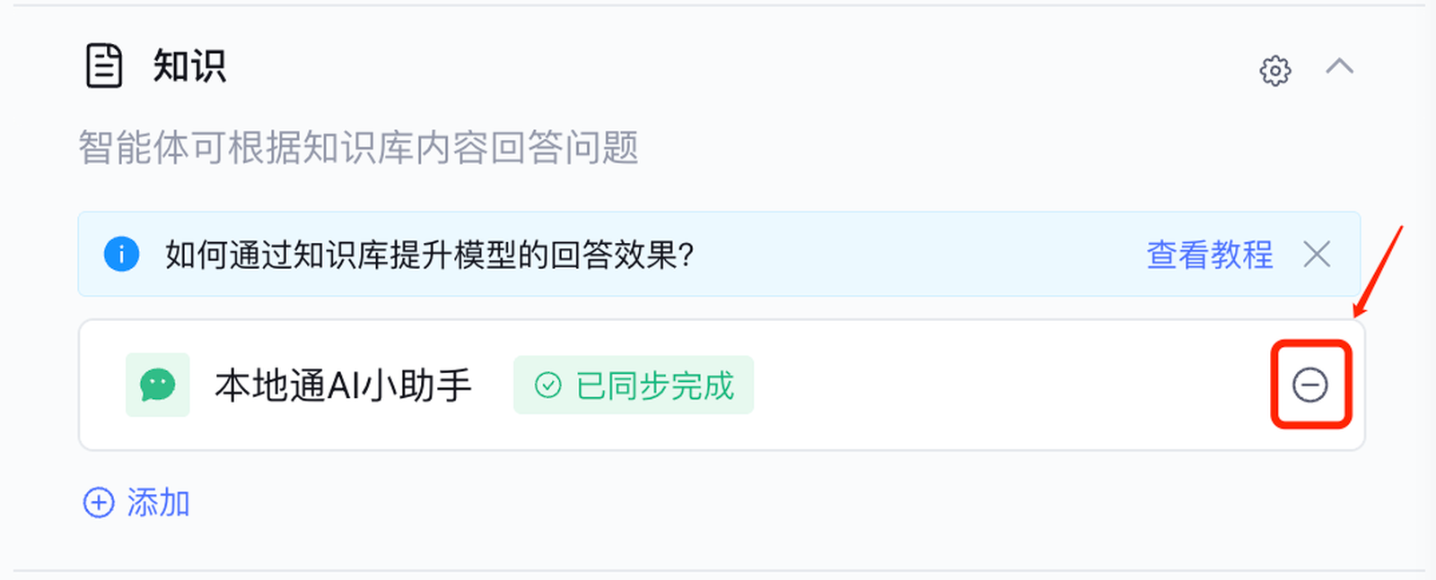 点击知识库列表记录右侧的操作面板中删除按钮,删除已经存在的知识。