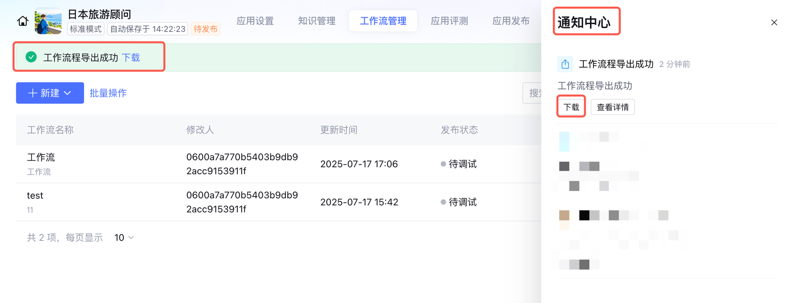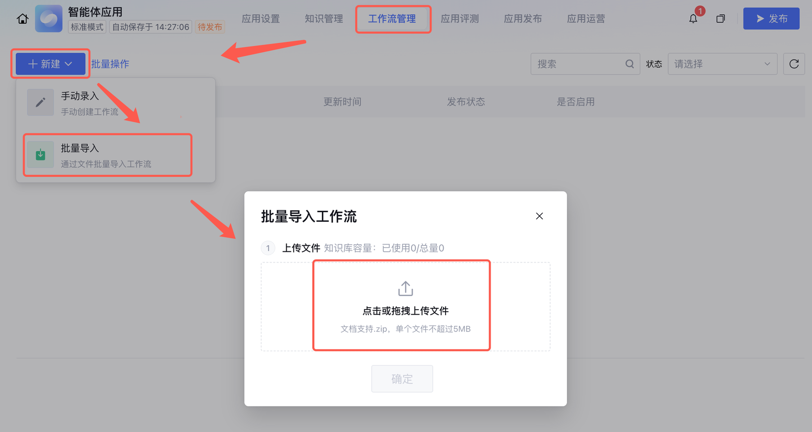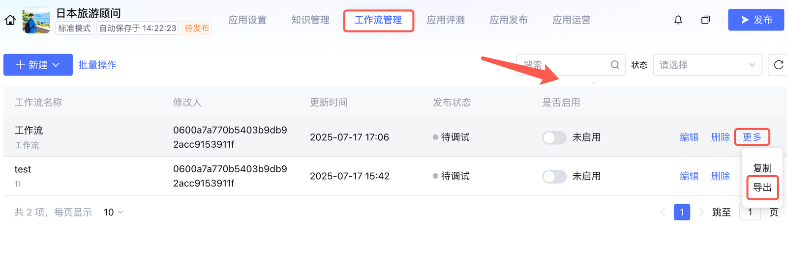 1. 进入目标智能体的工作流管理页面