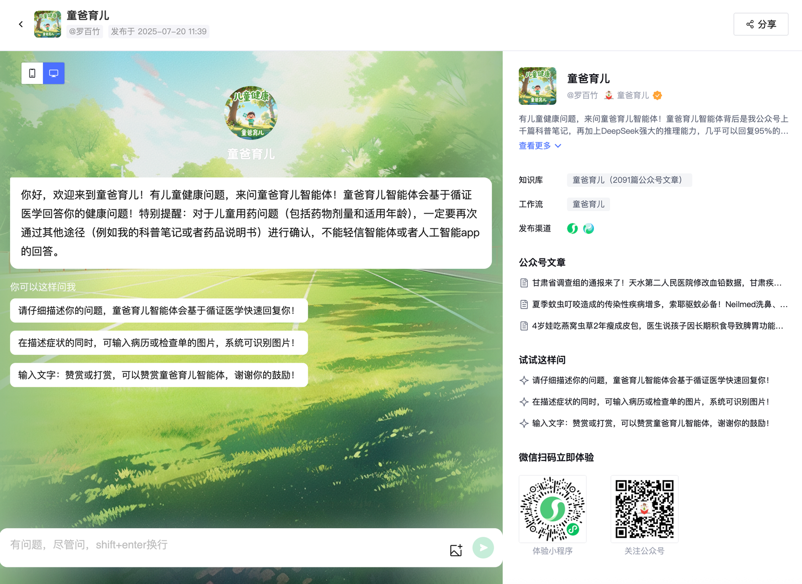 进入体验链接后,您可以进入智能体的总览页面来进行体验。