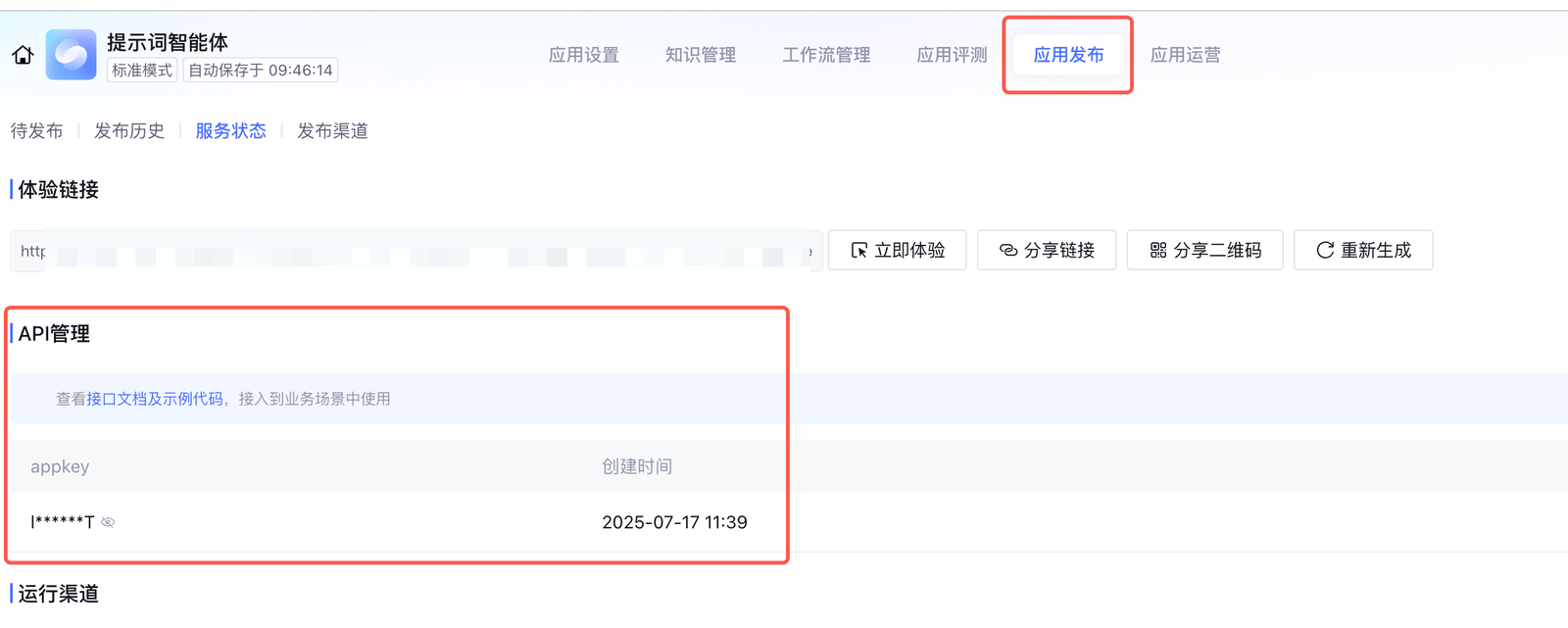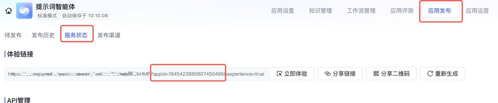 智能体配置——应用发布——服务状态——体验链接——appid