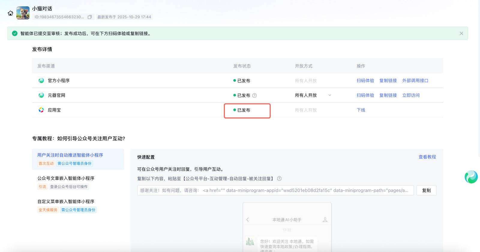 发布审核:发布过程中会有审核机制,平台会对智能体的基础信息、智能体功能、生成内容进行合格审核。