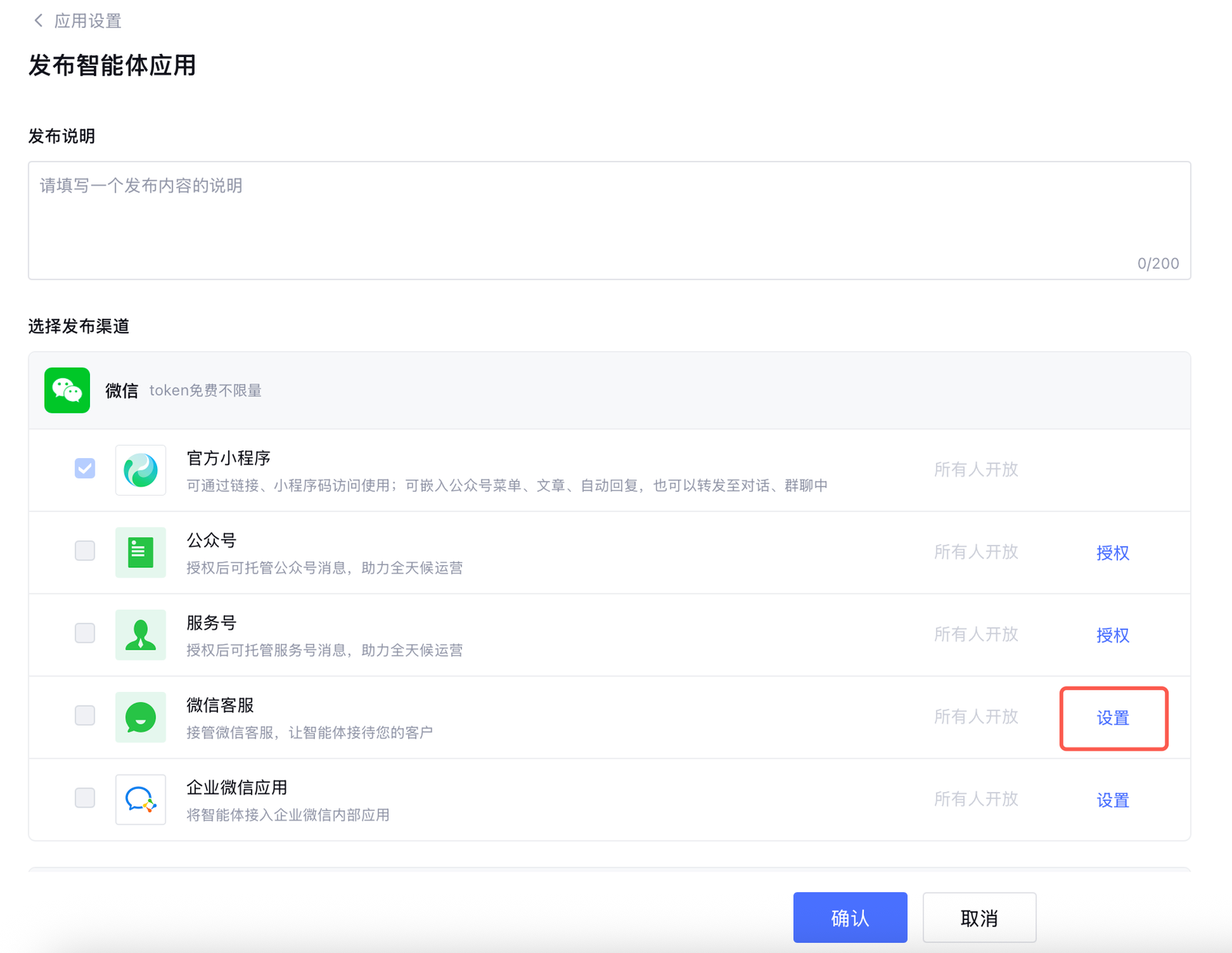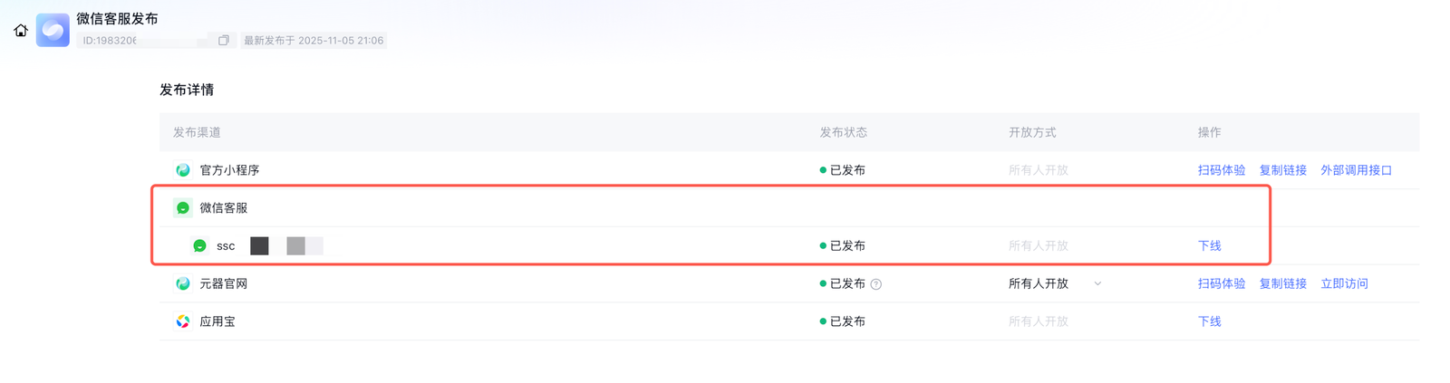 第四步:勾选发布微信客服渠道