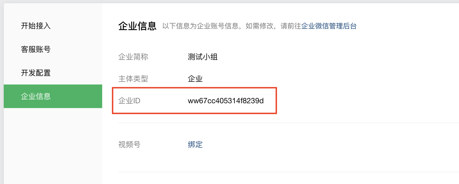 点击完成后可获取企业secret