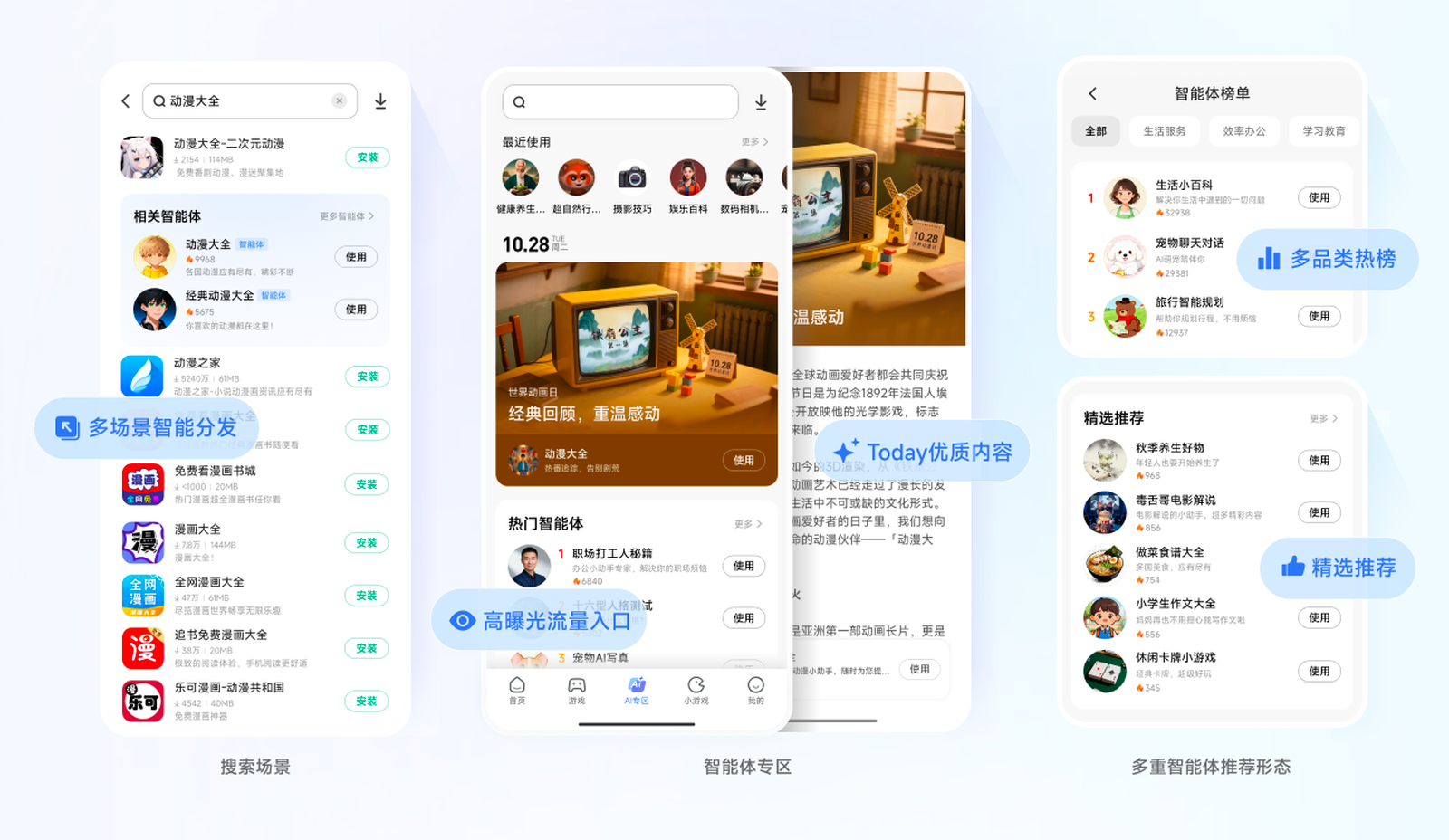 ①在小米手机的应用商店内,有"智能体"的底tab,tab内展示智能体;
