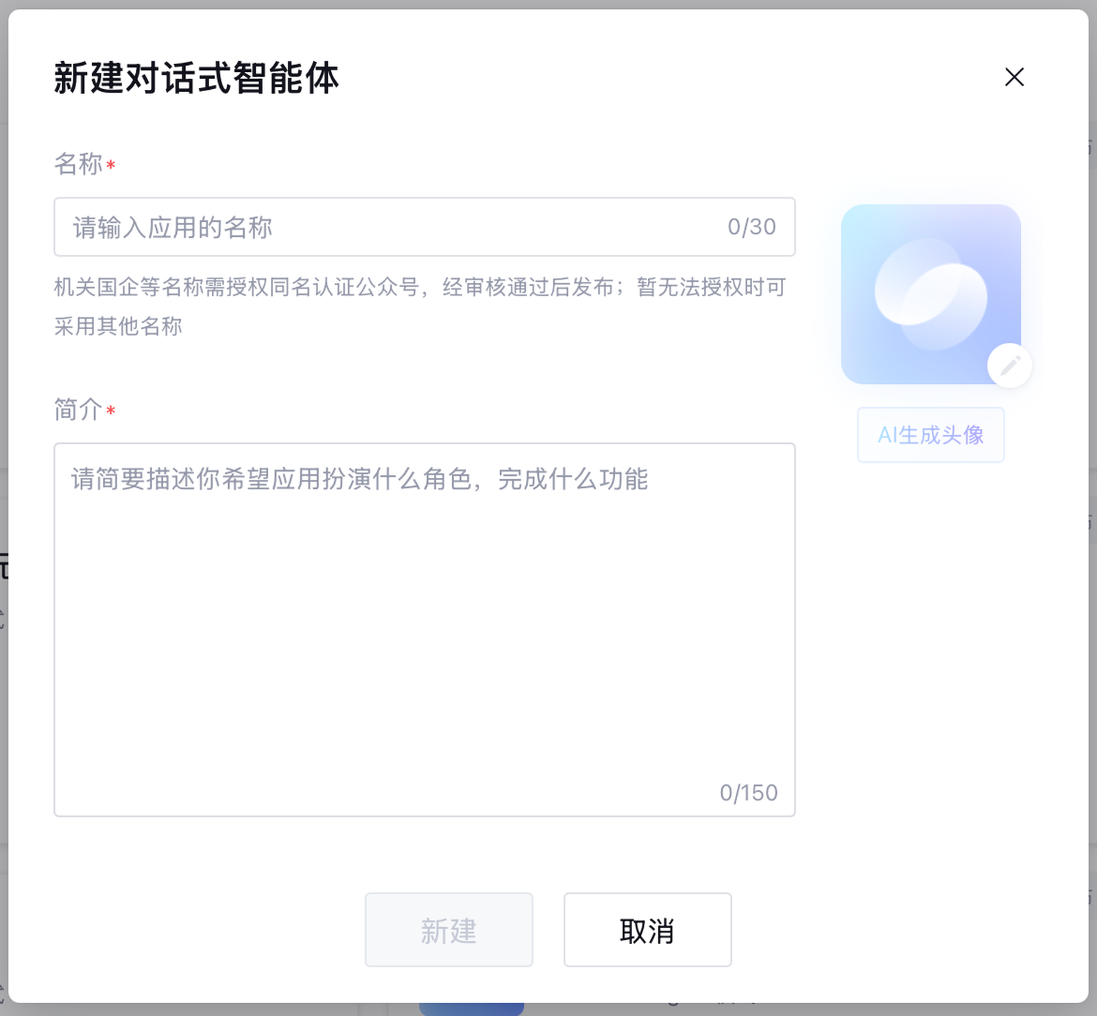 填写智能体基本信息:智能体名称、图片、简介。
