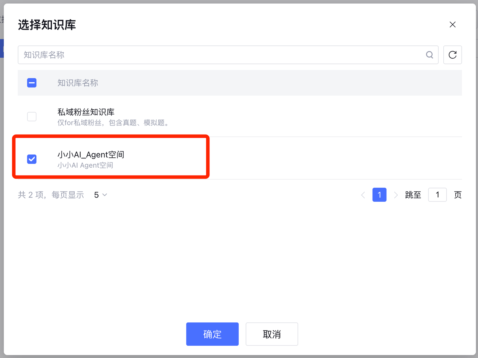 想要解除知识库同样点击+添加知识库,在选择知识库弹窗中取消勾选。